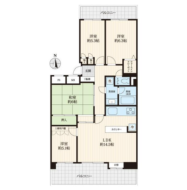 | 間取り | 4LDK (間取り内訳:和 6 洋 6.3・5.3・5.1 LDK 14.5) |