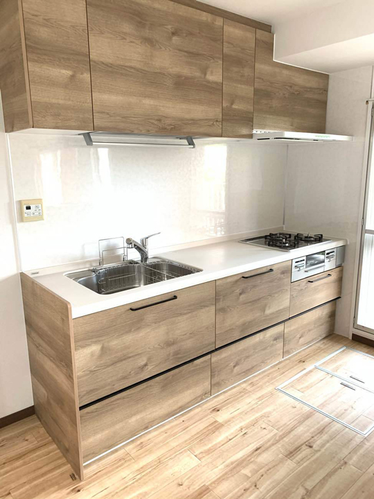 | 施工内容 | マンションリノベーション 水まわりリフォーム キッチン壁の開口工事 フローリング工事 |