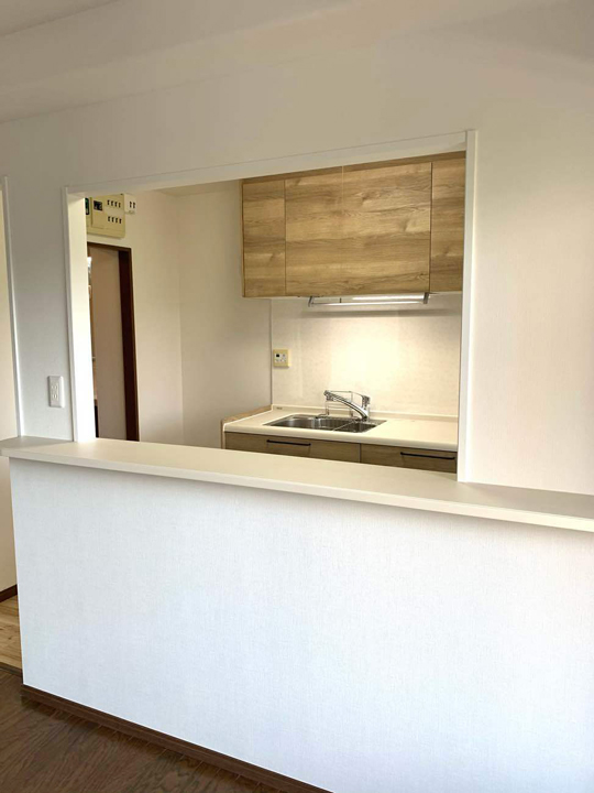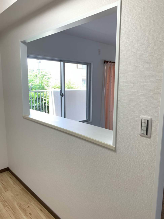 ご要望を踏まえ、キッチンとリビングを隔てていた仕切り壁を開口させていただきました。