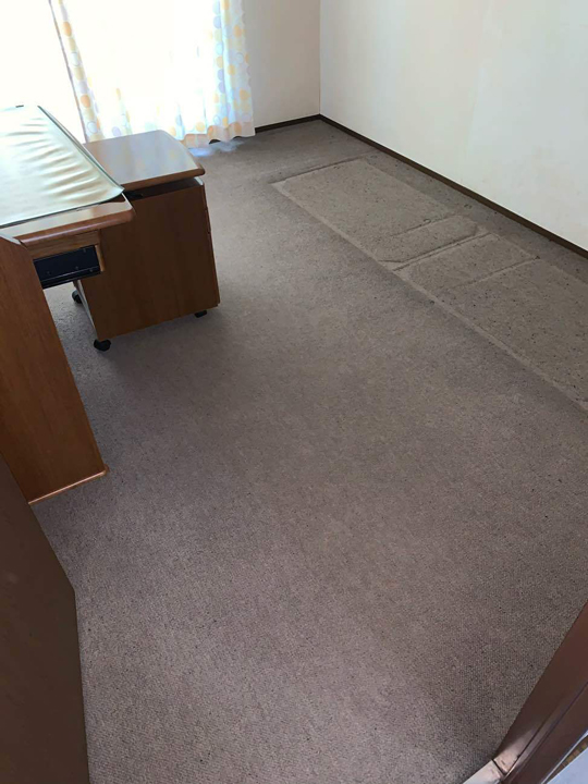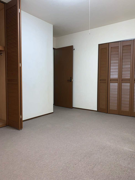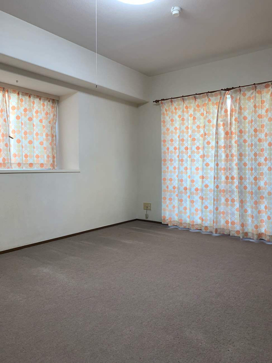 施工前の洋室2部屋のお写真です。フロアカーペットから防音性のあるフローリングに貼り替えていきます。