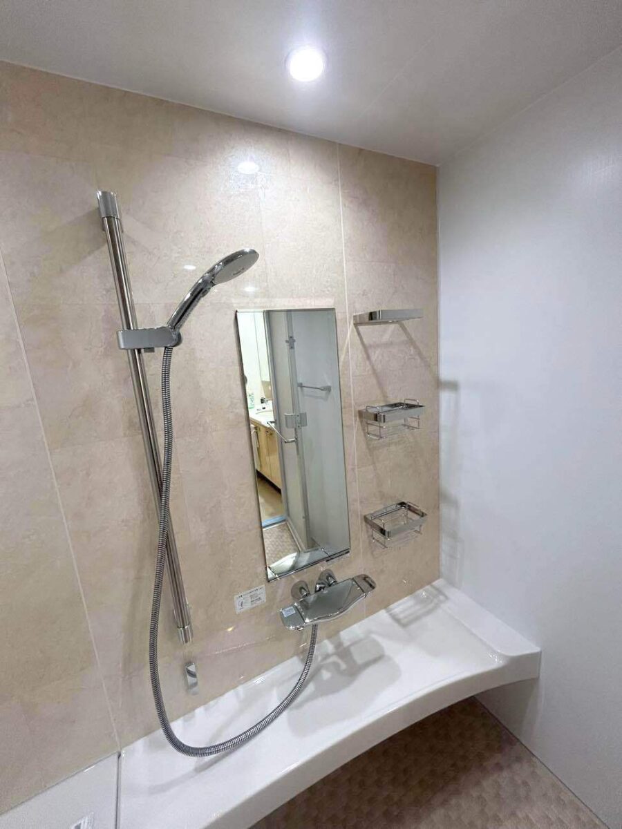 スライドバー付きシャワーや手すり、滑りにくい床など、日常の使いやすさと安全性にも配慮しています。