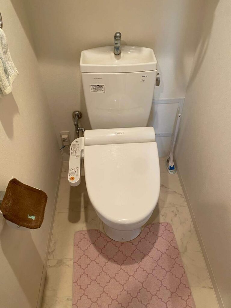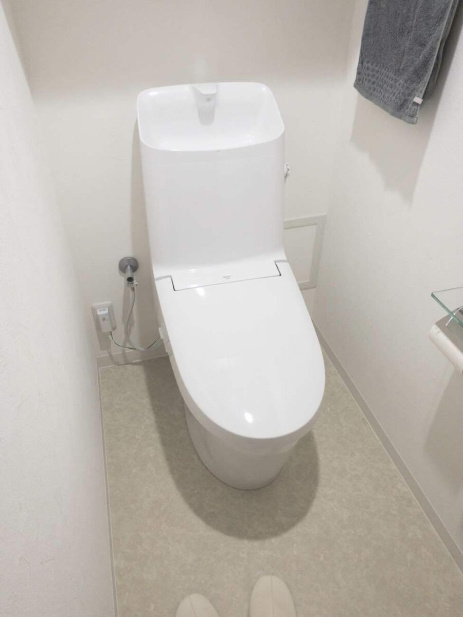 トイレはフチレス形状・継ぎ目なしでお掃除の手間も少なくなると思います。便器内はアクアセラミックというコーティングがされており、汚れがつきにくく、少ない水でしっかりと汚れを洗い流せます。
