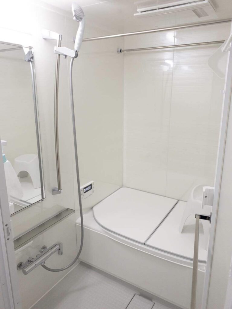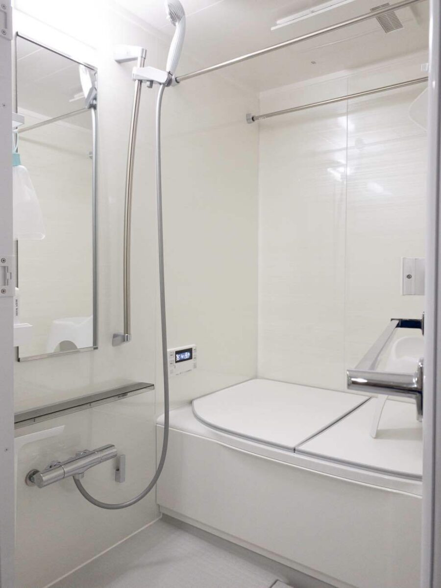 浴室は、全体的にホワイト系を基調としたカラーの仕様選択をされ、清潔感のあるお風呂になっています。既存のお風呂よりは清掃性の向上、汚れにくくなっていますので、長くご利用頂けます。