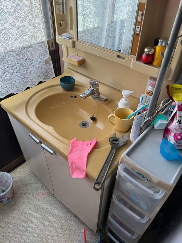 施工前の水まわりのお写真です。設備が古く使い勝手が悪かったため、最新の設備にリフォームしていきます。