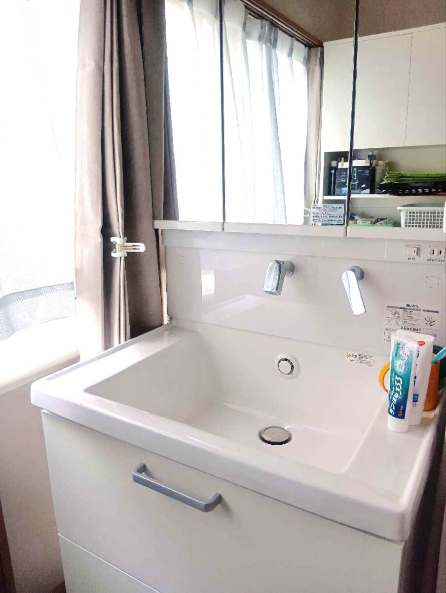 水栓の角度を変えれば手洗以外の作業もしやすく、ご家族でもみんなが使いやすい洗面になりました。
